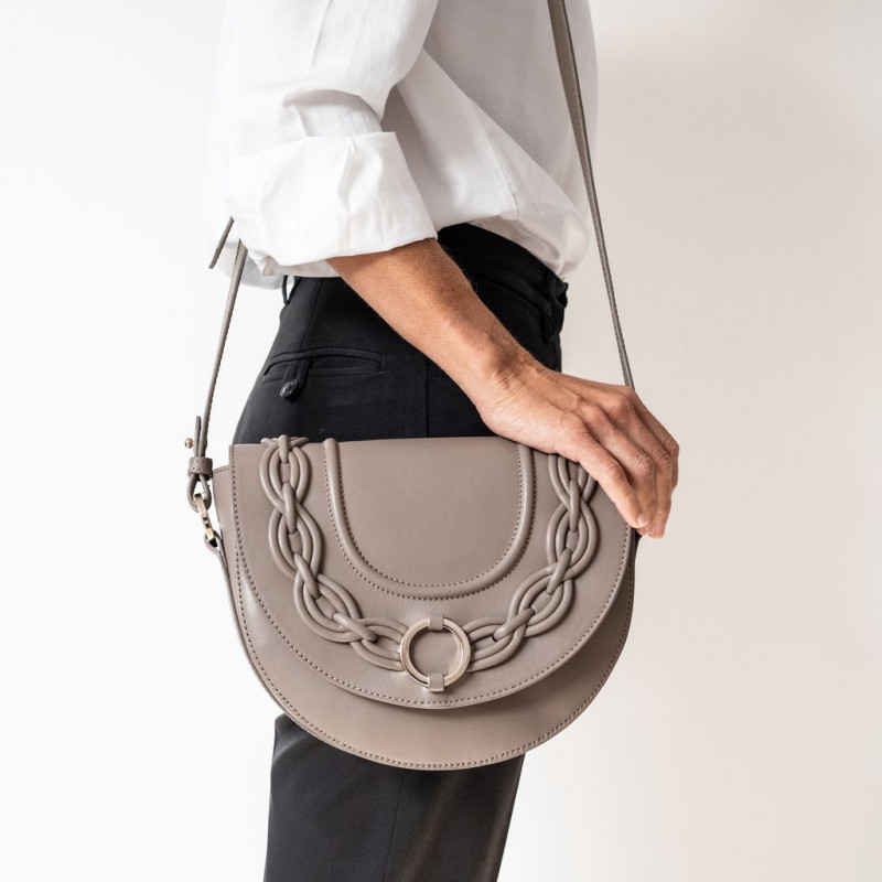 Bolso mediano con piel lisa que combina elegancia y practicidad.